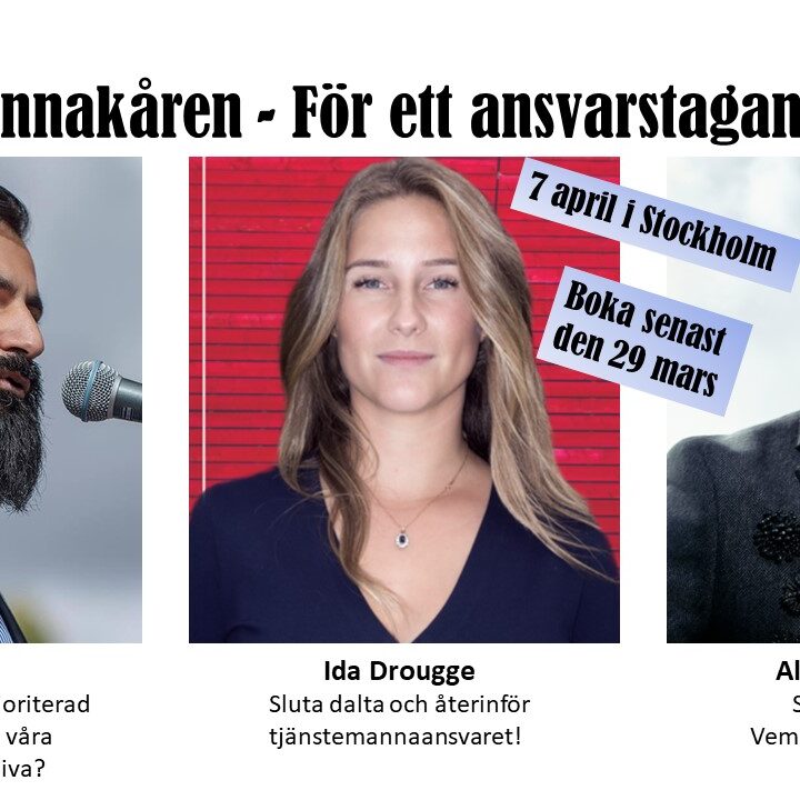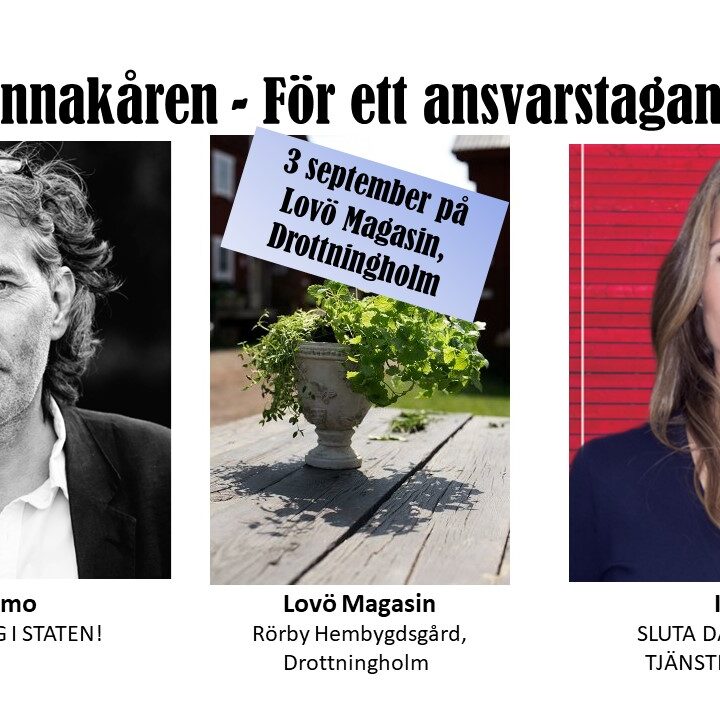 Datum och tid: 3 september kl. 13:00 till 16:45 Plats: Lovö Magasin, Drottningholm ANMÄLAN TILL EVENTET!!! [länk] Oväldig – rättvis, opartisk, omutlig, objektiv, alliansfri, neutral! Tjänstemannakåren bjuder in till en eftermiddag med två av landets mest färgstarka debattörer. Denna duo kommer – vågar vi lova – dela med sig av uppfriskande, kreativa och kraftfulla tankar…