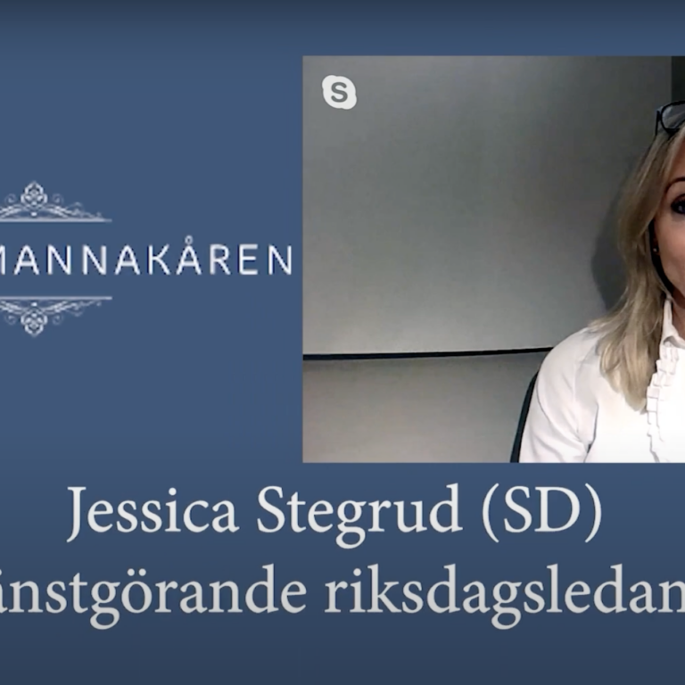 Tjänstemannakårens ordförande Peter Wallenskog samtalar med riksdagsledamot Jessica Stegrud (SD) under rubriken: EN VANLIG MÄNNISKA BLIR OVANLIG – Politiken behöver nytt blod. Jessica Stegrud är den vanliga svenska kvinnan som blivit den ovanliga svenska politikern. Med kraften ur den inre glöden, kunde Jessica inte vara tyst längre – kraften skulle bara ut. Något var fel…