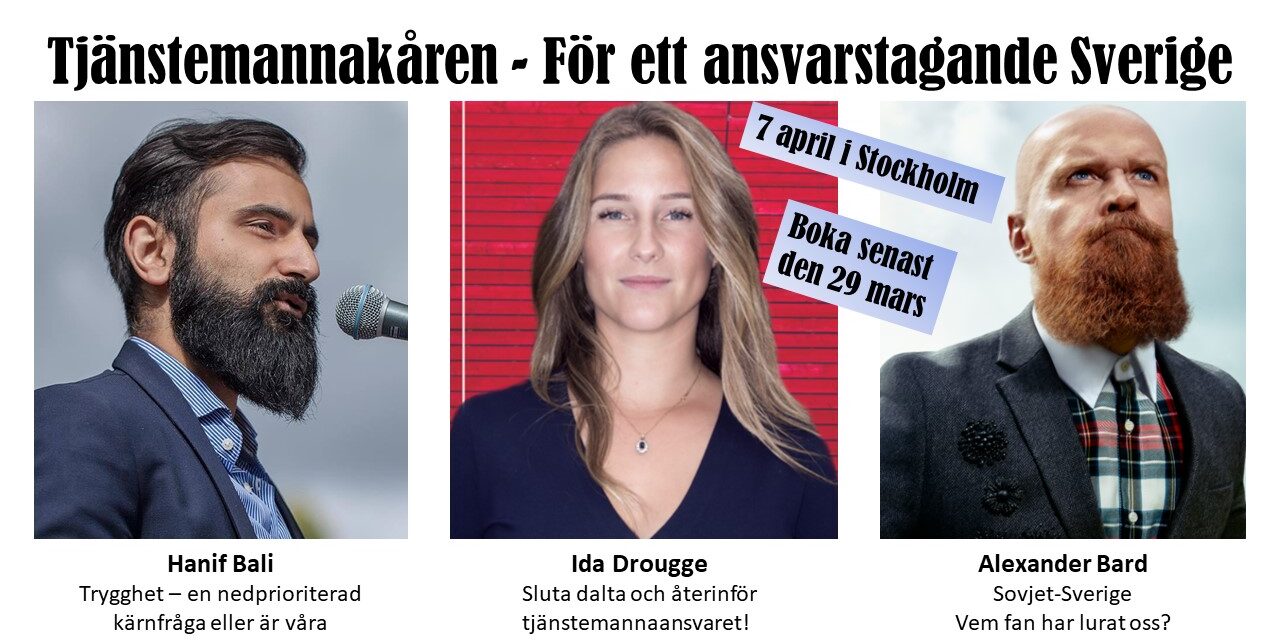 Det är med stor glädje Tjänstemannakåren kan bjuda in till en helkväll med tre av landets mest färgstarka politiska debattörer. Trion kommer – vågar vi lova – dela med sig av uppfriskande, kreativa och kraftfulla tankar och idéer.